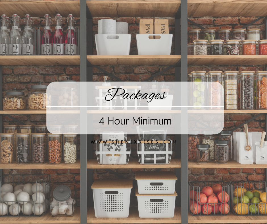 Whether you’re looking to tidy up a small space or overhaul your entire home or office, my organizing services are designed to fit your needs. I offer flexible, minimum 4-hour packages, giving you the time and attention you need to achieve lasting, functional results—all at an affordable rate of $75 per hour.